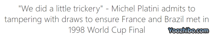 JRS直播网06月13日讯 消息,前欧足联主席普拉蒂尼承认,1998年世界杯主办方故意让法国队和巴西队在决赛前不相遇。