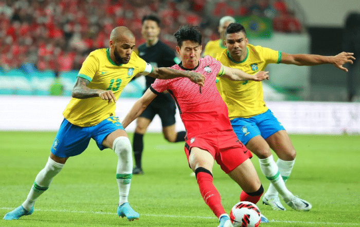 2022年6月,韩国队和日本队依然保持亚洲一流的地位,早早晋级世界杯正赛,而且先后选择挑战世界排名第1的豪门:五星巴西。韩国队在6月2日感受到了与巴西队的真实差距,孙兴慜领衔的阵容被内马尔、里沙利松等人彻底击溃,巴西队5-1狂胜,直接将韩国队踢成了鱼腩。