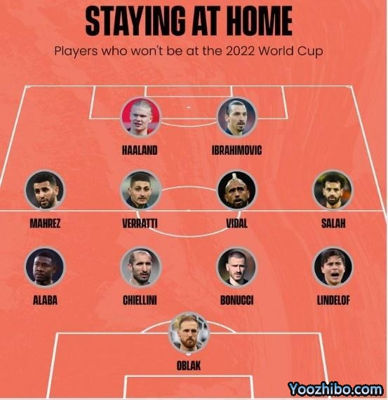 JRS直播网04月02日讯 消息,世界杯32强已经确定了29席,进球网盘点了缺席世界杯最强阵容,哈兰德和萨拉赫领衔。