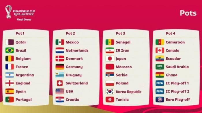 第四档:喀麦隆、加拿大、厄瓜多尔、沙特、加纳、欧洲区附加赛A组胜者、洲际附加赛胜者1、洲际附加赛胜者2