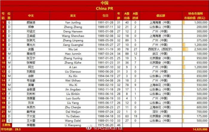 JRS直播网02月01日讯 北京时间今晚8点,中国将客场对阵越南,以下为国足的23人大名单。