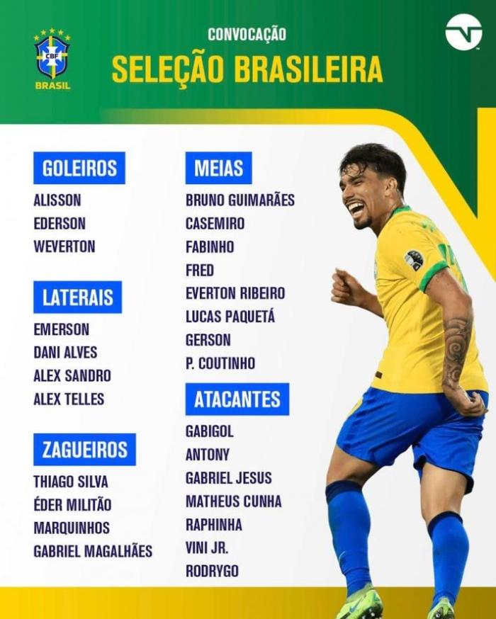 中场:卡塞米罗(皇马),法比尼奥(利物浦),吉马良斯(里昂),热尔松(马赛),弗雷德(曼联),库蒂尼奥(维拉),帕克塔(里昂),拉菲尼亚(利兹联),安东尼(阿贾克斯),罗德里戈(皇马),里贝罗(弗拉门戈)