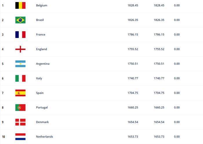 JRS直播网12月23日讯 ,国际足联官方公布了2021年最终国家队排名,比利时连续4年居首,国足第74。