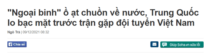 越南媒体以“‘雇佣兵’回家,中国对越南赛前就担心丢脸”为题撰写了这篇文章。