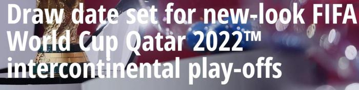 JRS直播网11月20日讯 ,国际足联官方宣布,2022年世界杯洲际附加赛的抽签仪式将在11月26日进行。