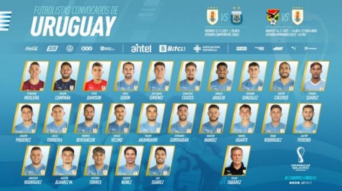 JRS直播网11月06日讯 ,乌拉圭官方公布新一期世预赛大名单,苏亚雷斯领衔,卡瓦尼因医疗原因落选。