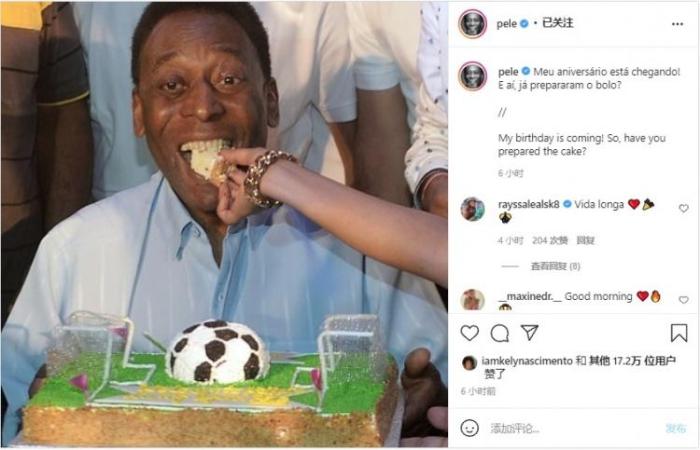JRS直播网10月23日讯 今天是球王贝利的81岁生日,正在庆祝生日的他也在社交媒体上更新动态,晒出自己吃蛋糕的照片。
