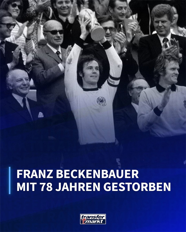 JRS直播网01月09日讯 ,来自德新社的消息,德国传奇球星、“足球皇帝”贝肯鲍尔离世,享年78岁。据悉,贝肯鲍尔的家人向媒体确认,贝肯鲍尔是于德国时间上周日离世,直到现在才将这一消息公开。贝肯鲍尔近年来一直在与病魔作斗争。但近几个月有报道称,情况不断恶化。贝肯鲍尔接受了两次心脏手术,还接受了髋关节手术。2023年,贝肯鲍尔失去了一只眼睛的视力,并患上了一种叫做眼梗塞的疾病。最终,这位足坛传奇还是没能击败病魔,在2024年的新年伊始便告别了人世。