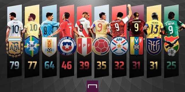 JRS直播网9月12日讯南美一直是足球的天堂,足球的水平一直是世界上的佼佼者,而正因如此,南美足坛也是诞生了很多优秀的足球运动员,最近有媒体统计了最佳射手的进球数排名,一起来看一下具体的排名情况吧!