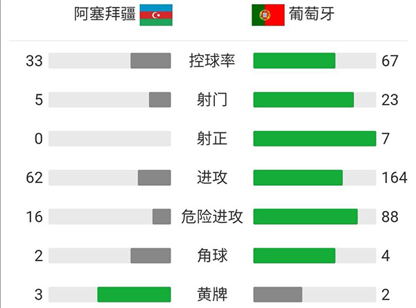 全场比赛结束,葡萄牙3-0战胜阿塞拜疆。