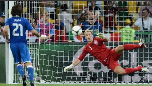 除了齐达内,皮尔洛在2012年欧洲杯四分之一决赛的勺子点球同样令人印象深刻。意大利和英格兰在这场比赛苦战120分钟打成0-0,比赛进入扣人心弦的点球大战,在前两轮点球中,皮尔洛观察到英格兰门将哈特的扑救有些问题,便选择了勺子点球。这粒点球大今后,英格兰球员的情绪受到影响,既愤怒又紧张,最终导致英格兰输掉了点球大战。