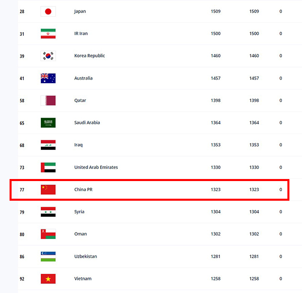 2021年6月12日,2022卡塔尔世界杯&2023中国亚洲杯预选赛第二阶段比赛中,中国队以5:0的分数战胜了马尔代夫国家男子足球队 。6月18日,中国国家队世界排名上升了5位,从第77位跃居至第72位 。