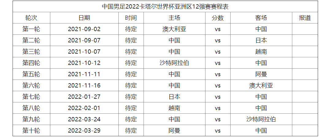 国足12强赛赛程表