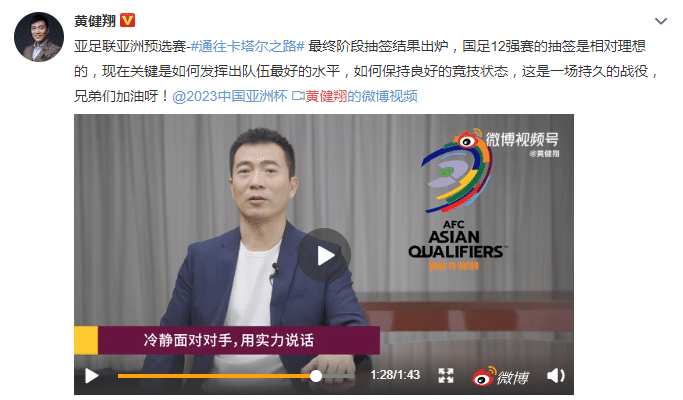 JRS直播网讯 7月5日消息,世预赛12强赛分组抽签结果出炉,著名足球评论员黄健翔认为如果不要在弱队身上丢分,国足有50%的出线概率。