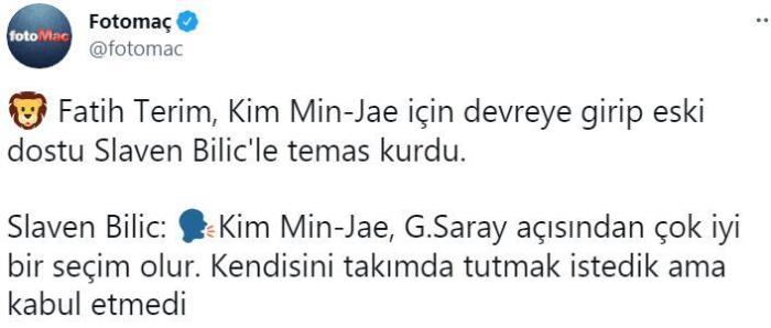 加拉塔萨雷目前正在寻找一位高大型中卫,比利奇告诉自己的好友特里姆:金玟哉会是个不错的选择。