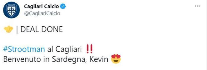 JRS直播网讯 北京时间7月3日,卡利亚里官方宣布,从马赛租借签下荷兰中场斯特鲁特曼,租期1年。