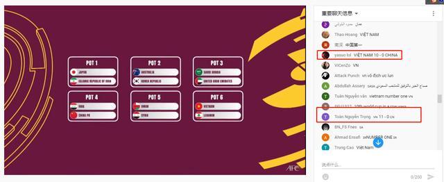 在亚足联的抽签直播中,有部分越南球迷在抽签结果出来后留言表示:“越南10-0中国,越南11-0中国”。