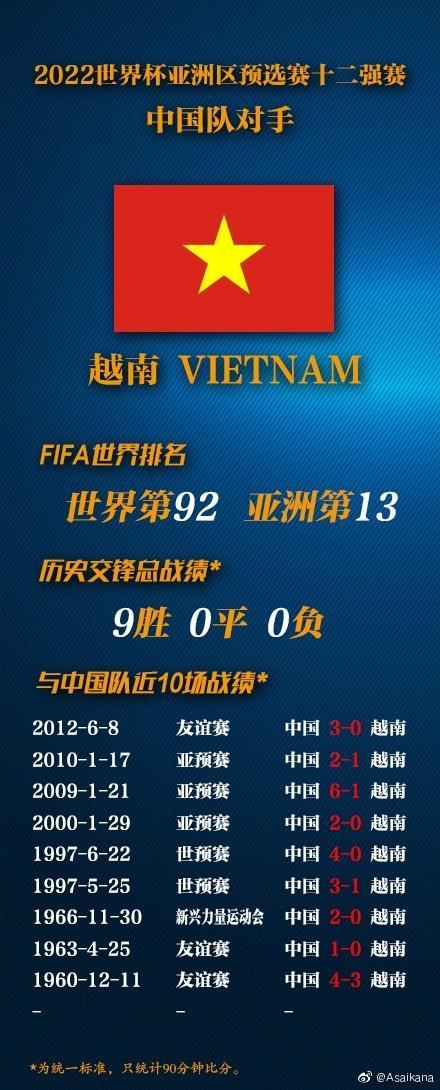 JRS直播网讯7月1日消息,国足和几个12强赛小组赛对手的交手战绩中,近10次和日本交手国足均不胜,但对越南全胜。