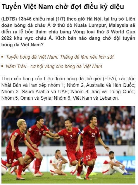 JRS直播网讯 越南媒体Lao Động Thủ đô认为,如果越南能够与伊朗、澳大利亚、阿联酋以及中国同组,那么有可能会发生奇迹。