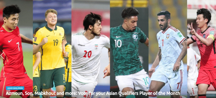 JRS直播网讯 近日亚足联官网评选“亚足联月度最佳球员候选”,其中入选的一共有9名球员,分别是武磊(中国)、马瓦斯(叙利亚)、阿兹蒙(伊朗)、苏塔尔(澳大利亚)、南野拓实(日本)、萨勒姆(沙特)、法瓦兹(阿曼)、马布霍特(阿联酋)和孙兴慜(韩国);