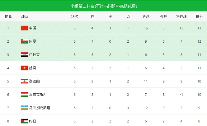 这些球队中,国足是在最后一个比赛日才锁定的晋级资格,值得一提的是在国足比赛前,就已经确定了晋级资格,由于约旦未能战胜澳大利亚,所以国足提前晋级到12强赛。而到了和叙利亚的比赛中,中国队不负众望的击败对手,第二阶段4战全胜,展现出了绝对的统治力,表现强势。