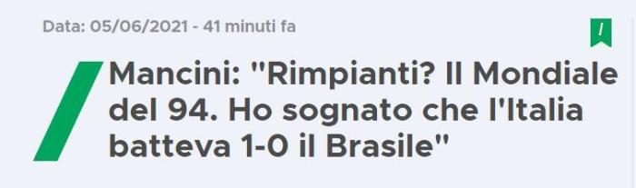 JRS直播网讯近日,意大利主帅曼奇尼在接受《体育周刊》采访时表示,他最后悔的一件事就是拒绝参加1994年世界杯。