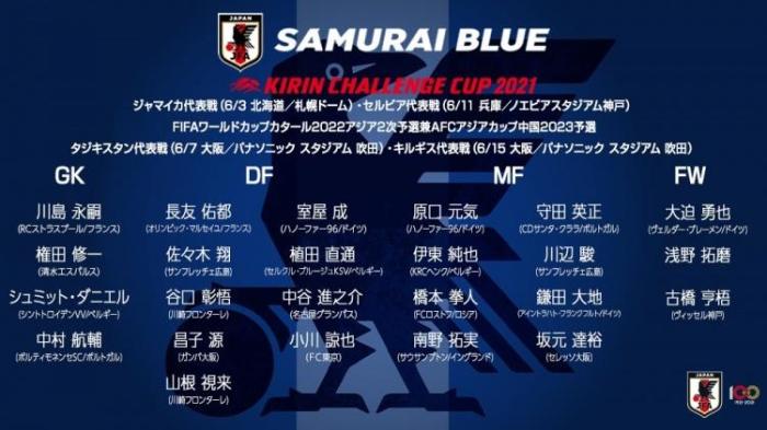 JRS直播网讯 今天,日本足协公布了最新一期的两套国家队名单,全留洋阵容将于5月28日与缅甸进行世预赛比赛,而另一套拥有14名留洋球员的阵容则将出战6月份vs牙买加和塞尔维亚的麒麟杯和vs塔吉克斯坦以及吉尔吉斯斯坦的世预赛。