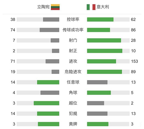 全场比赛结束,凭借着森西的远射进球和因莫比莱最后时刻的点射破门,意大利2-0战胜立陶宛拿下三分。
