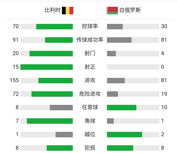 全场比赛结束,白俄罗斯毫无招架之力,比利时8:0血虐白俄罗斯,暂时小组排名第一!