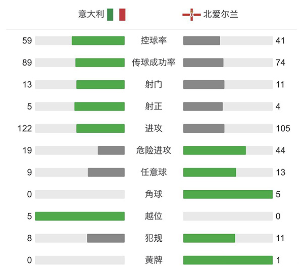 意大利2-0北爱尔兰 贝拉尔迪、因莫比莱建功