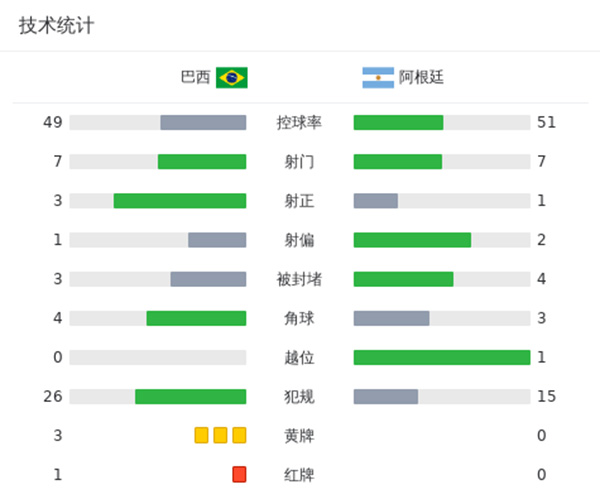 全场比赛结束,最终阿根廷1-0巴西。
