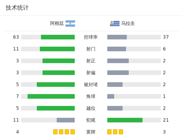 第41分钟,乌拉圭打破僵局!比尼亚前场左路反抢莫利纳成功后下底横传后点阿劳霍跟上爆射破门,阿根廷0-1乌拉圭。