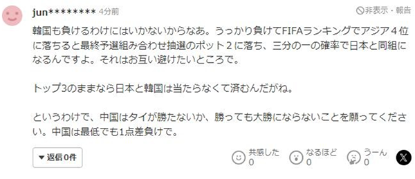 日本球迷更是嘲讽国足,称可以提前祝贺泰国队晋级。