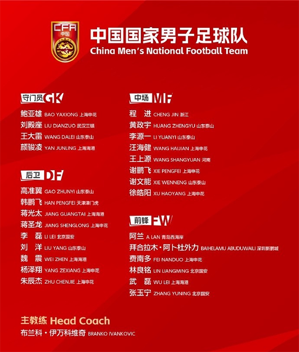 JRS直播网讯 北京时间8月21日,中国男足主帅伊万科维奇通过直播的方式,公布了新一期国家队27人集训名单。这些国脚也将代表中国男足,参加18强赛前2轮与日本和沙特的比赛,那么这份名单有哪些看点值得球迷关注呢?