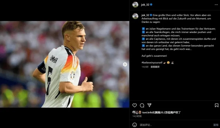 JRS直播网讯 基米希出任德国队长,发表感言: