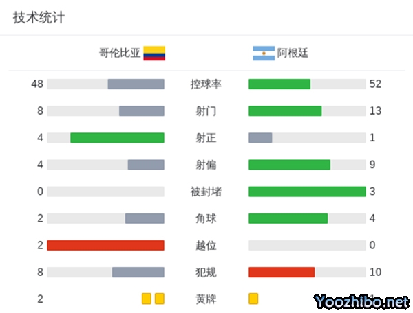 第48分钟,哥伦比亚后场传球失误,冈萨雷斯抢断后突入禁区,单刀球低射破门,阿根廷1-1哥伦比亚。