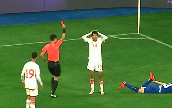 本场比赛上半场,双方互交白卷。到了下半场,形势风云突变。第66分钟,阿联酋球员萨尔门,拼抢中飞铲乌兹别克斯坦球员。
