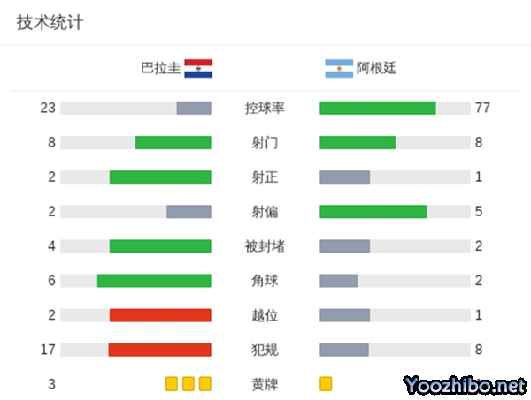 本场过后,阿根廷积22分、多赛一场领先第二的哥伦比亚3分;巴拉圭积16分。