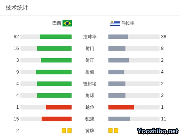 最终巴西1-1战平乌拉圭,积18分仍居第五位,乌拉圭积20分第二。