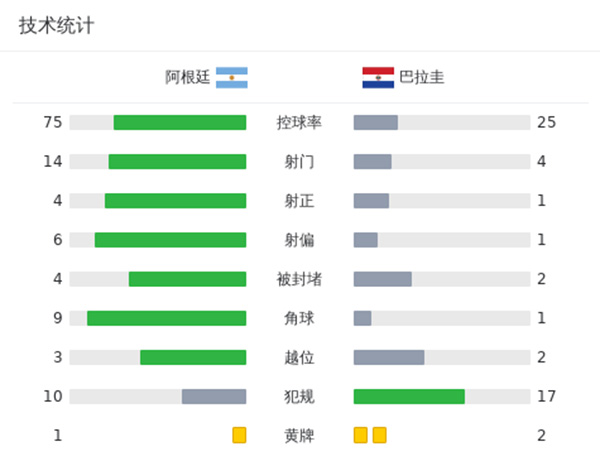 最终,阿根廷1-0巴拉圭。