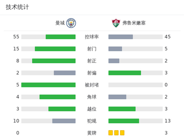 双方出场阵容: 曼城首发:31-埃德森、2-沃克、5-斯通斯(74’24-格瓦迪奥尔)、3-迪亚斯、6-阿克(81’52-鲍勃)、16-罗德里(74’25-阿坎吉)、82-刘易斯(61’8-科瓦西奇)、20-B席、47-福登(81’27-努内斯)、10-格拉利什、19-阿尔瓦雷斯 替补未出场:18-奥尔特加、33-卡森、4-菲利普斯、21-戈麦斯、68-阿莱恩、76-苏索霍、92-汉密尔顿 弗鲁米嫩塞首发:1-法比奥、12-马塞洛(61’5-亚历克斯桑德)、30-梅洛(60’40-迪奥戈-巴博萨)、33-尼诺(74’4-马隆)、2-萨穆埃尔-哈维尔、7-安德烈、8-马特乌斯-马丁内利、11-基诺、10-甘索(60’45-利马)、21-阿里亚斯、14-卡诺(46’9-约翰-肯尼迪) 替补未出场:22-佩德罗-兰格尔、23-古加、98-厄德、29-蒂亚戈-桑托斯、38-冈萨雷斯、44-大卫-巴斯、20-丹尼埃尔