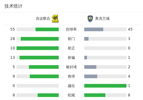 关键事件: 第29分钟,吉达联合左路进攻横传到大禁区弧顶,罗马里尼奥跟进推射破门!吉达联合1-0奥克兰城↓