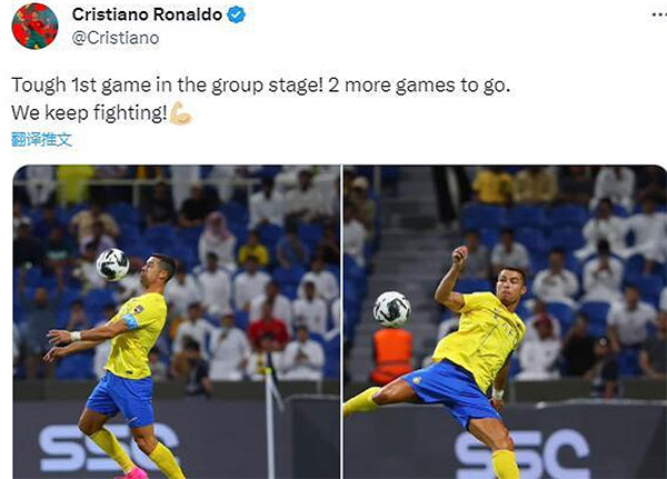 比赛结束之后,C罗在社交媒体上晒出自己比赛的照片,同时配文鼓舞全队,称:“艰难的第一场小组赛,还有2场比赛要踢,我们继续战斗!”