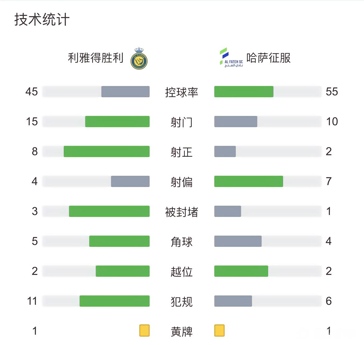 最终利雅得胜利主场3-0完胜哈萨征服。