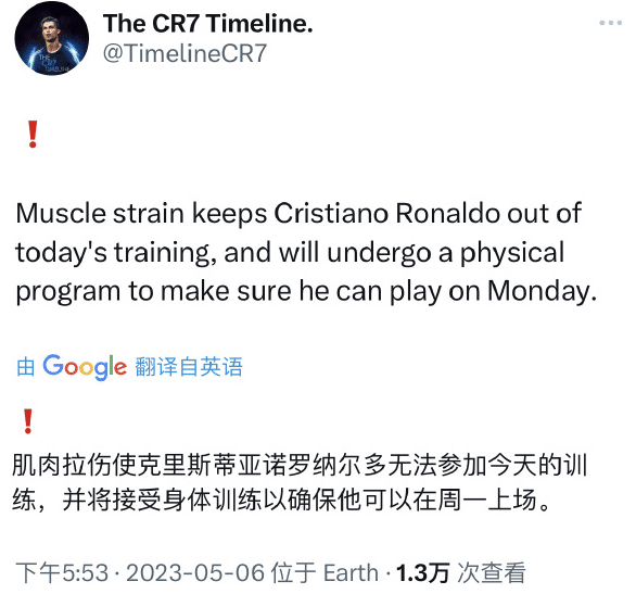 如今C罗传来消息,他的肌肉疲劳,缺席训练,还将接受俱乐部安排的体检。这是根据沙特媒体的报道显示,利雅得胜利的教练组同医疗团队达成一致,倾向于让C罗缺席今天全队的合练,因为目前他感觉到肌肉疲劳。至于接下来的训练是否会继续缺席,还需要进行综合评估。