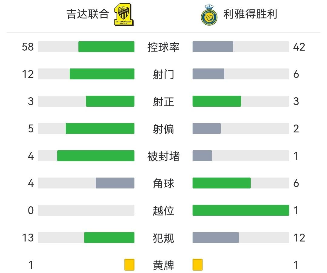 全场比赛结束,利雅得胜利0-1吉达联合让出榜首。