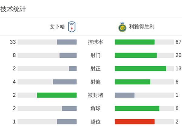 全场比赛结束,利雅得胜利8-0艾卜哈,各赛事四连胜!