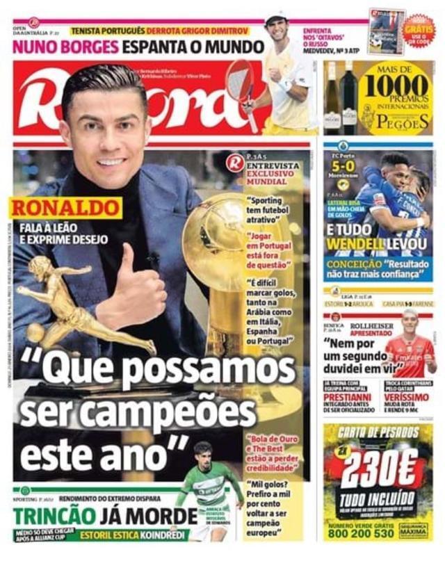 JRS直播网01月21日讯 在C罗出席环足奖颁奖典礼后的几个小时,葡萄牙三大报之一的记录报记者David Novo对C罗进行了独家专访。而北京时间1月21日,这篇专访的第一部分内容,也被《记录报》公布出来。
