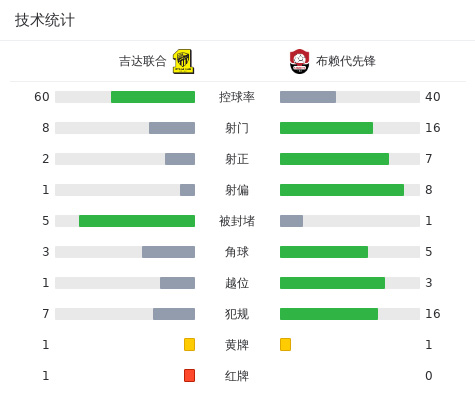 最终10人吉达联合1-3负于联赛倒数第二的布赖代先锋,仍居第6。