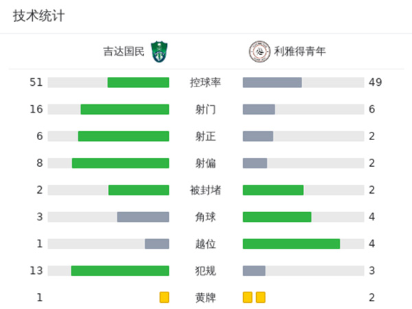 JRS直播网讯:北京时间11月26日沙特联 联赛 第14轮,吉达国民主场对阵利雅得青年。比赛上半场菲拉斯-布赖坎禁区抽射,皮球被门将抱住,马赫雷斯调整兜射,皮球稍稍高出球门,下半场比赛卡拉斯科突破劲射,皮球稍稍偏出,补时阶段海赛姆-阿西里倒在禁区内,裁判没有表示,全场战罢,最终比分0-0。